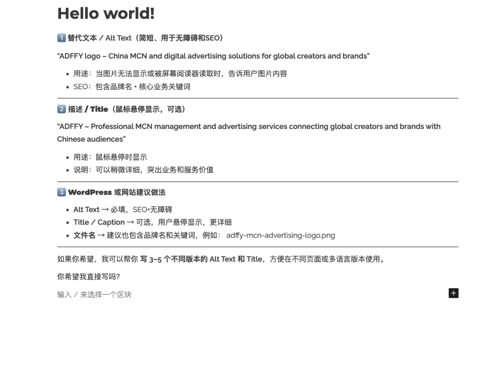• Alt Text → 必填,SEO+无障碍